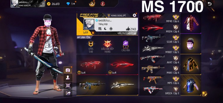 2 CÂY 4 , SCAR TITAN , M1887 CHẾ TÁC , MP40 GIÁNG SINH , M14A1 RỪNG XANH , AK RỒNG LỬA , ....... ĐỒ CHUYÊN NAM BAO ĐẸP CHẤT || LOG GG TTT || CẦN XEM FULL+ ẢNH NÉT ACC LIÊN HỆ MÌNH QUA ZALO : 0968201864 || MÌNH CÓ CỌC BÊN CEO LỰC 5M (Ở WED TOIUYTIN.COM AD SỐ 91) NÊN MỌI NGƯỜI YÊN TÂM GIAO DỊCH Ạ. CẦN BIẾT THÊM THÔNG TIN CHI TIẾT HAY THẮC MẮC GÌ IB MÌNH QUA ZALO: 0968201864.