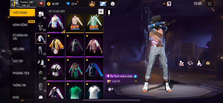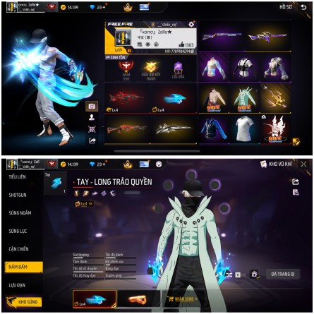 Acc ff siêu ngon có cả hành động nhảy dù , full Naruto , đấm lv4 , scar 4 , shot chiến tranh và shot địa chất