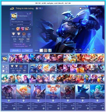 ELSU SỨ GIẢ , ATHUR SIÊU VIỆT , VIO TIỆC BÃI BIỂN , ĐỐNG SKIN S+ HỮU HẠN NGON , ALL SKIN NHƯ HÌNH ,....... |||| THÔNG TIN ACC : SỐ ĐỔI - MAIL GIAO - CCCD ( BẢO KÊ ALL ) ||| CẦN XEM FULL+ ẢNH NÉT ACC LIÊN HỆ MÌNH QUA ZALO : 0968201864 ||| ACC MÌNH BẢO KÊ ALL VĨNH VIỄN ||| MÌNH CÓ CỌC BÊN CEO LỰC 5M (Ở WED TOIUYTIN.COM AD SỐ 91) NÊN MỌI NGƯỜI YÊN TÂM GIAO DỊCH Ạ. CẦN BIẾT THÊM THÔNG TIN CHI TIẾT HAY THẮC MẮC GÌ IB MÌNH QUA ZALO: 0968201864.